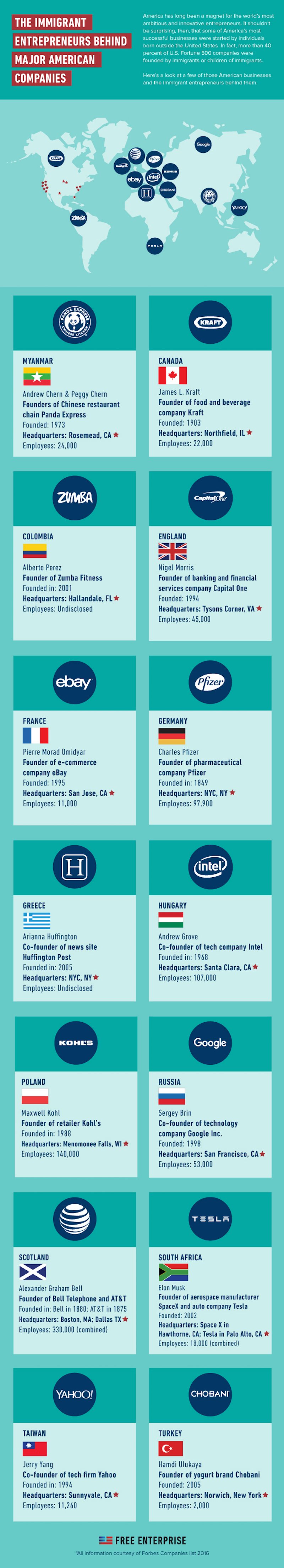 In fact, 40% of Fortune 500 companies were founded by either immigrants or the children of immigrants and immigrants make up over 28% of all us owned business. I guess if you consider all of the citizens of the USA immigrants who just arrived at different times in history the real number would be 100% of businesses are either owned by immigrants or their descendants.