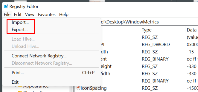 Once open, follow the path (Computer – HKEY_CURRENT_USER – Control Panel – Desktop – WindowMetrics) to the icon spacing panel. (Backup your registry values)