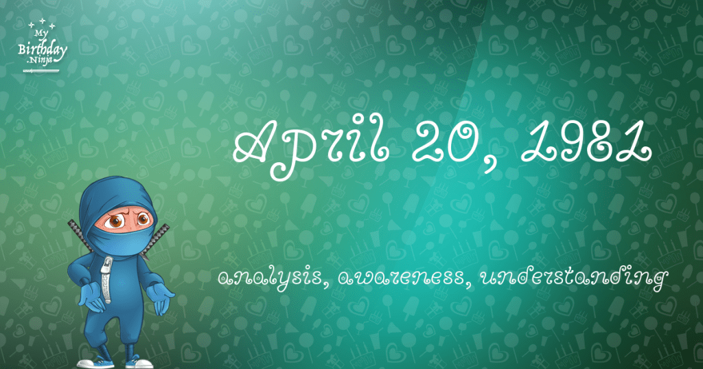 Here are some snazzy birthday facts about 20th of April 1981 that no one tells you about. Donβt wait a minute longer and jump in using the content links below. Average read time of 13 minutes. Enjoy!